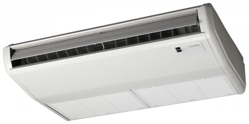 Next one is this ceiling mount unit. Those are designed for when there is no space on the walls and also there is no space inside the ceiling void. They tend to start from higher capacities because they are not designed to be used in small rooms. They have a very strong air flow and they are ideal for rooms with a very high ceiling. As we eat any system that is not designed to be used in a domestic environment the remote are usually hard wired remote.